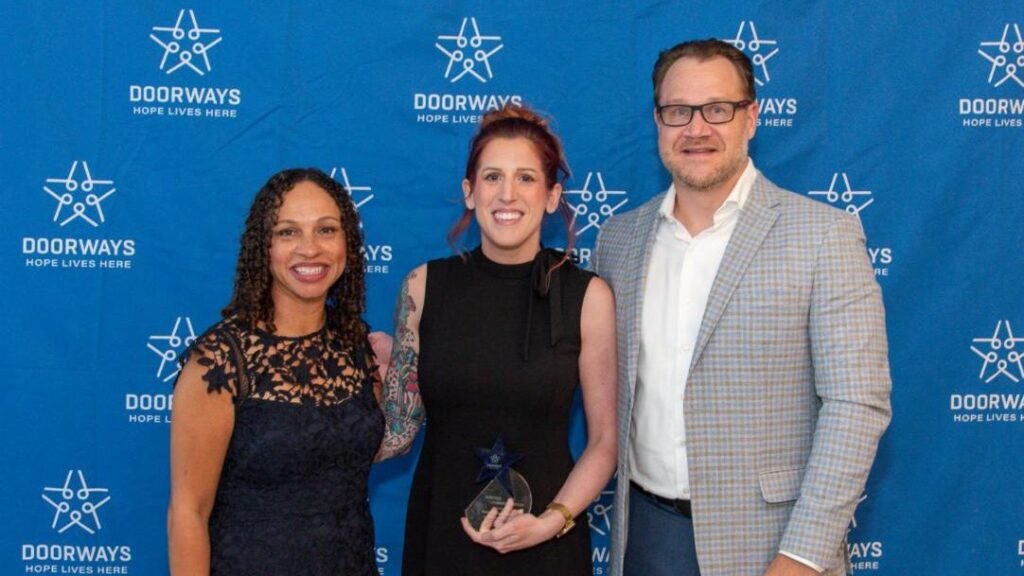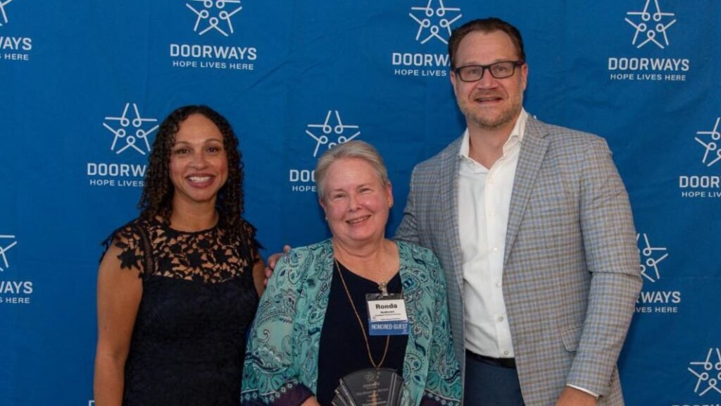 Partnership Awards were presented to Sherri Henderson, Roxzanna Mosby, and Kimberly Mueller for their commitment and support of the Employment Alliance. The Employment Alliance is an initiative of the DOORWAYS Career Services Program that provides workforce development, job readiness training, and direct connections to employment opportunities.
