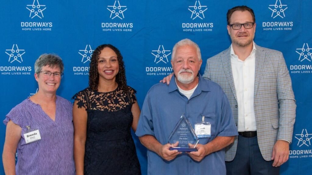 The Generosity Award was presented to Jim Stika, of Stika Brothers Concrete. Jim has been a steadfast friend to DOORWAYS for more than 30 years. Every winter, no matter the conditions, Jim has ensured our properties are safe, even orchestrating snow removal from his hospital bed. In all that time, Jim has never raised his prices, choosing instead to make this service his personal gift to DOORWAYS.