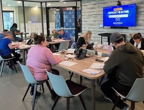 To kick-off advocacy week, DOORWAYS staff wore red–a color associated with HIV through the use of red ribbons–to show unity and raise awareness. During the phone-a-thon, participants completed 436 phone calls to a list of 187 federal, state, and local elected officials. Community members also wrote personal notes on the agency’s advocacy postcards, which DOORWAYS mailed to the entire list of elected officials.